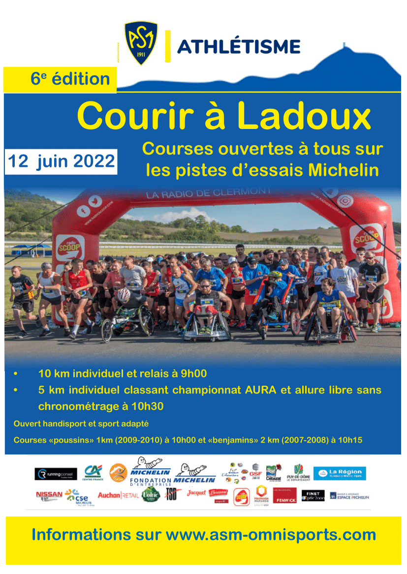 La sixième édition de « Courir à Ladoux » sur les pistes d’essais du site de Michelin Ladoux, à Cébazat aura à nouveau lieu après deux année…