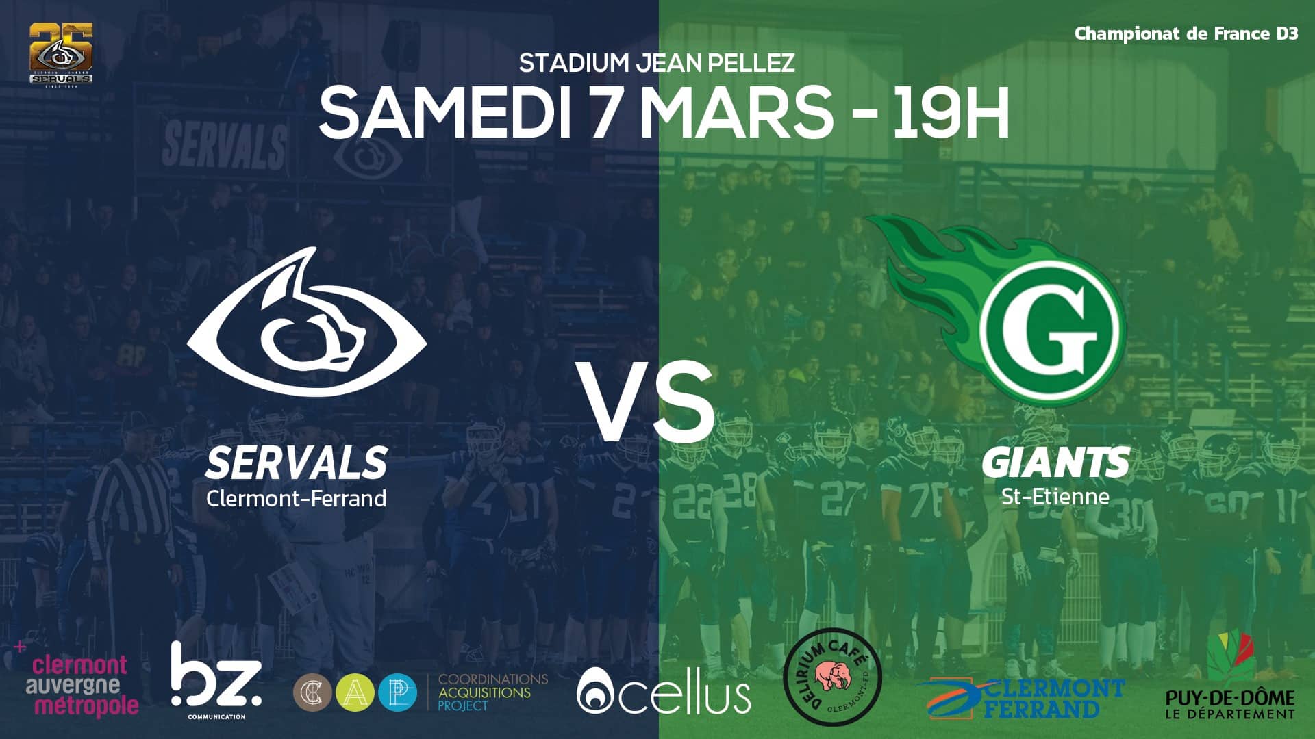 Ce samedi soir, à 19h00, au Stade des Cezeaux, les Servals de Clermont-Ferrand reçoivent les Giants de Saint-Etienne dans le cadre de la cin…